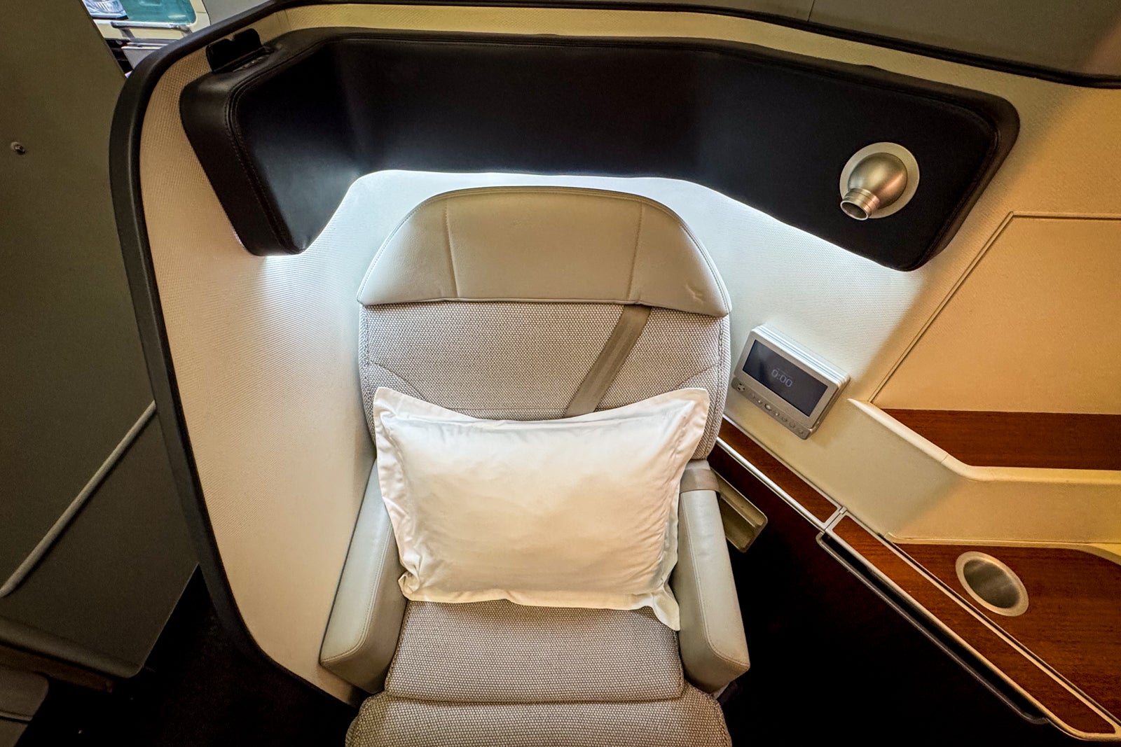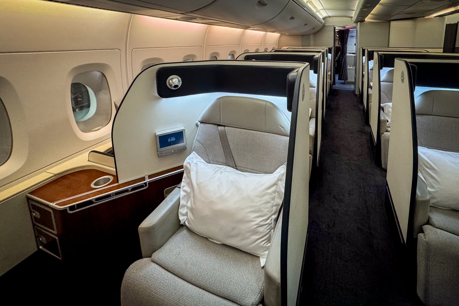 Though the seats are not the most contemporary (we’ll have to wait for the airline’s A350s to go into service for the next generation), they are still comfortable and spacious. The soft touches are where Qantas first class truly shines, though, with excellent bedding, premium Aesop amenity kits, extensive dining options and crew members who seem to truly love what they do.