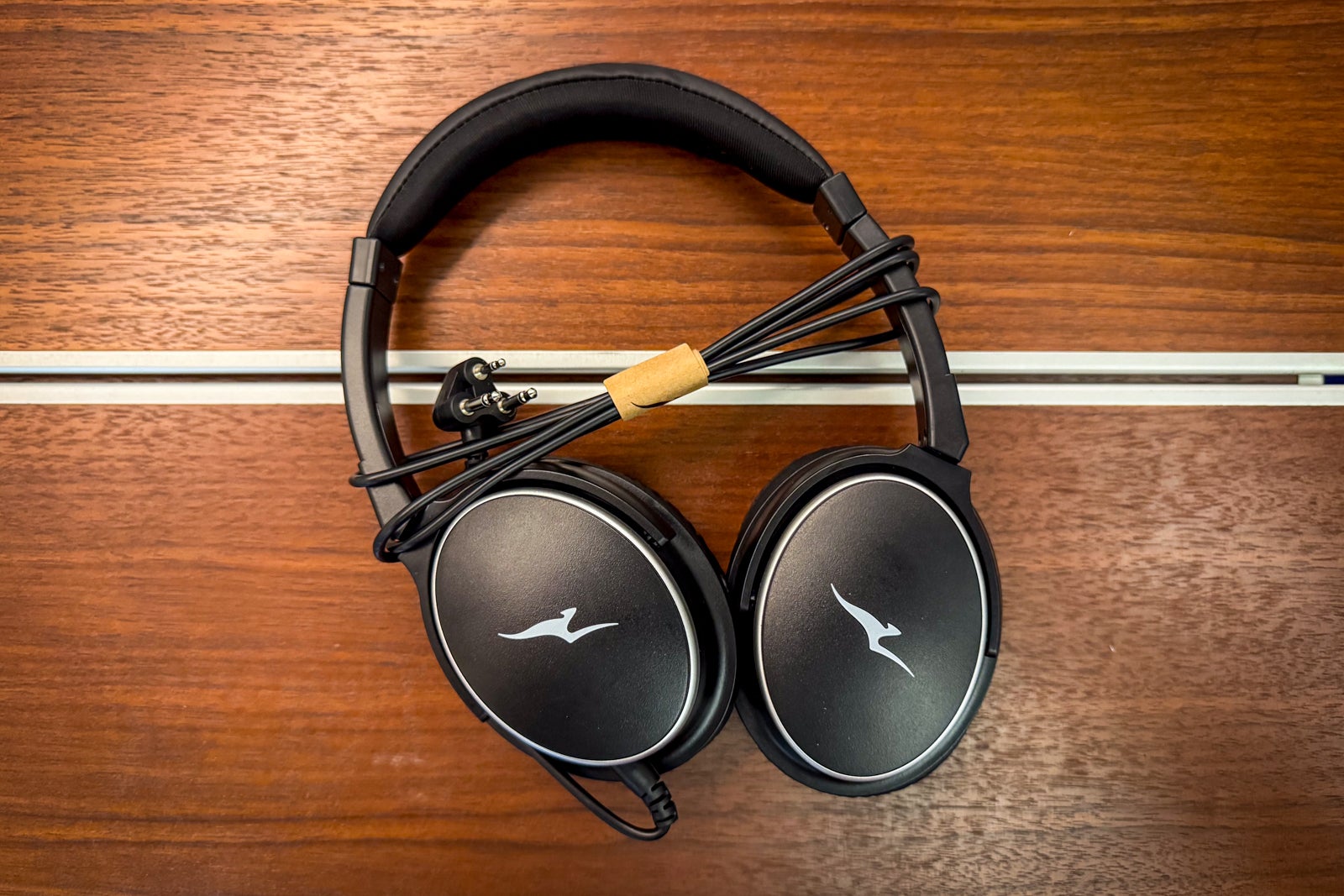 The airline provides basic noise-canceling headphones that function fine. Unfortunately, there’s no Bluetooth connectivity, so you can’t use your own more advanced set with the system.