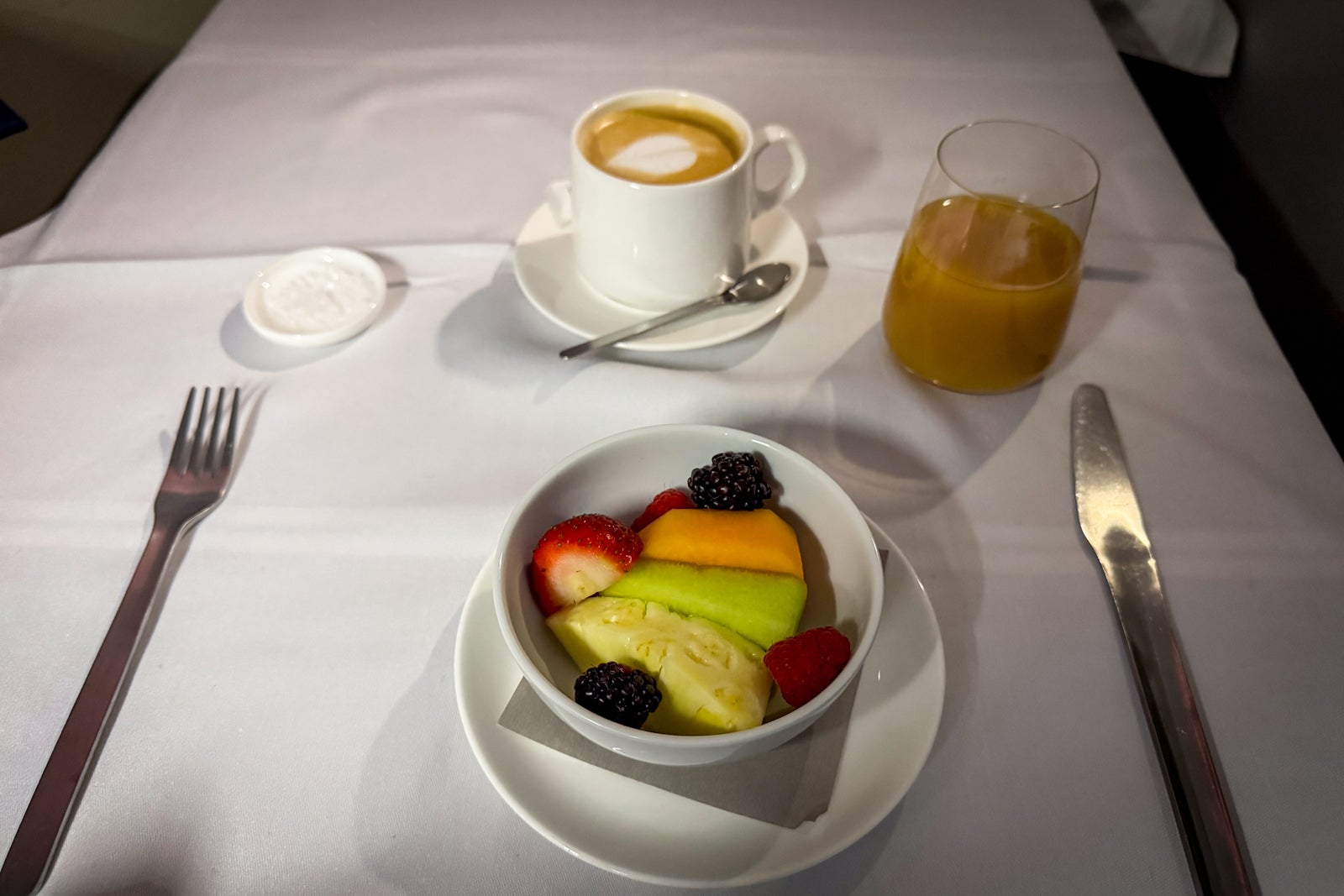 I got a solid eight hours of rest, which pretty much never happens for me on a flight. I was one of the last passengers to wake up. Others had ordered some light snacks off the menu in addition to beverages, but I waited until breakfast was served about two hours before landing.