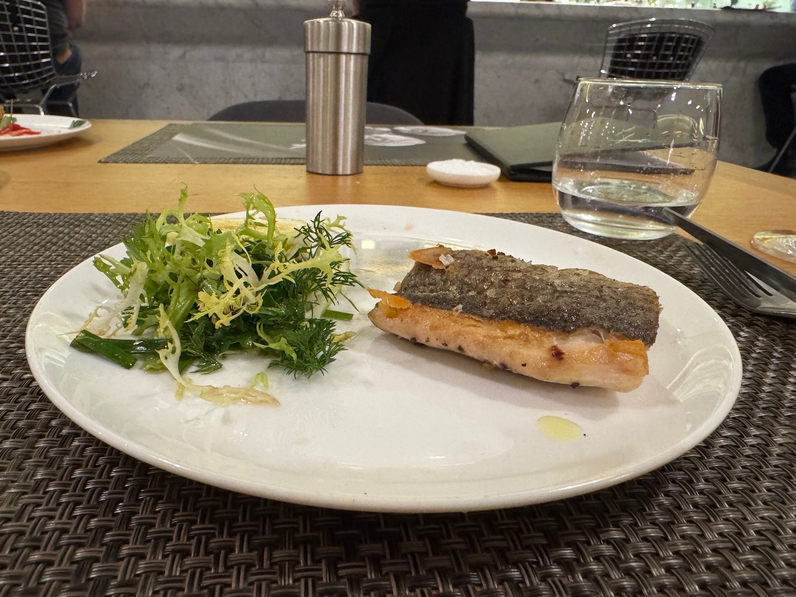 I’ll just note that the lounge was serving Lallier Reflexion R.021 Champagne at the time of my visit, and the seasonal a la carte menu included options like seared local sea bass with a fresh herb salad and spring asparagus with yogurt and chili. I ordered the famous salt and pepper squid, too, though, given it’s so highly regarded.