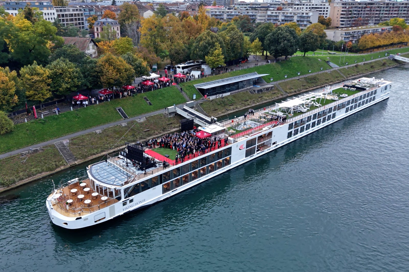 The 190-passenger Viking Honir, which will sail on the Rhine River from Basel to Amsterdam, was the only one of the nine new ships physically present in Basel for the naming ceremony.