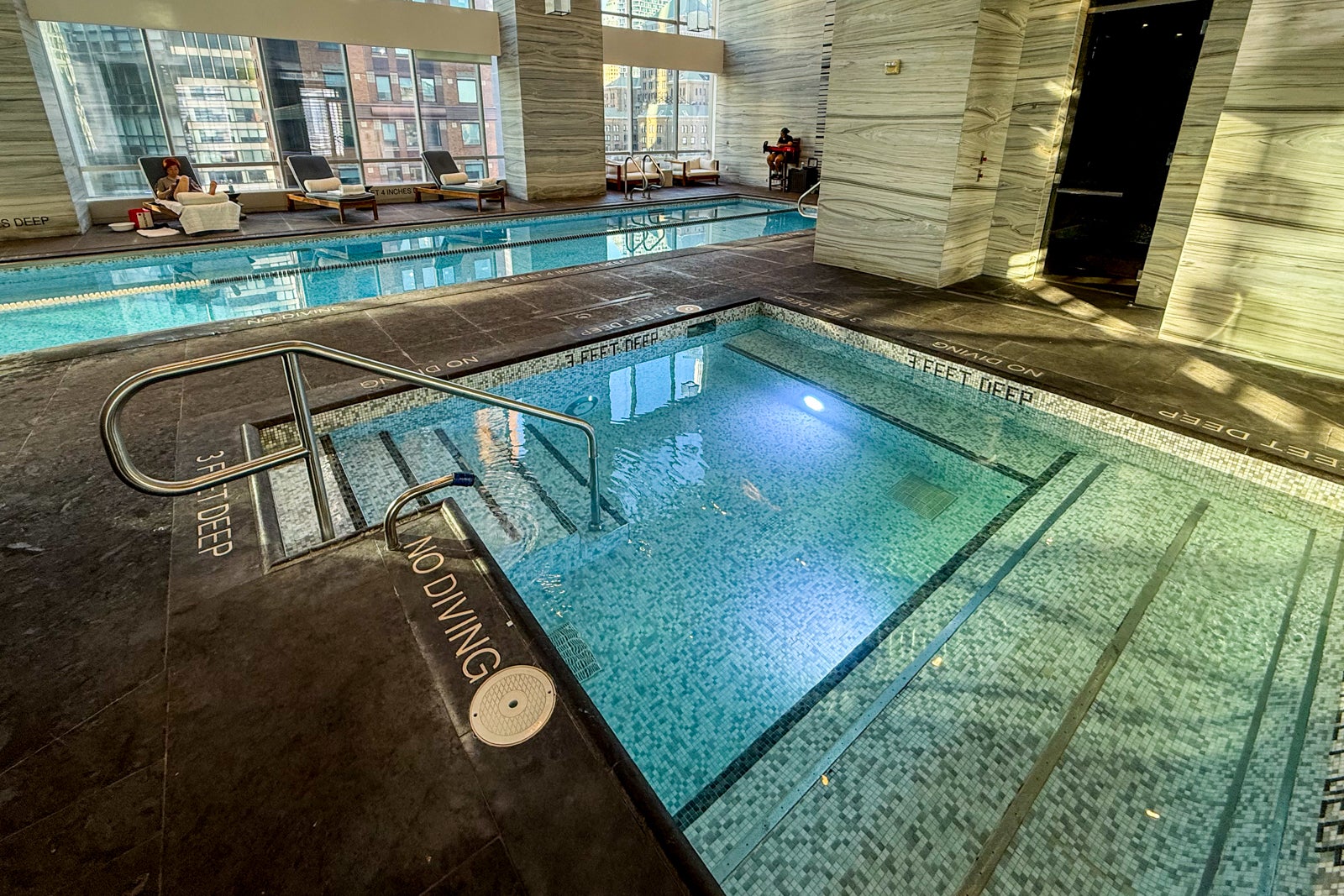 In addition to the pool, there is also an oversize hot tub and a steam room. I’m a sucker for turning on the bubbles, getting in the hot tub and just soaking it all in. It’s the perfect spot to remind yourself how lucky you are to be living in a timeline when it’s possible to book a New York City hotel like this one on points.