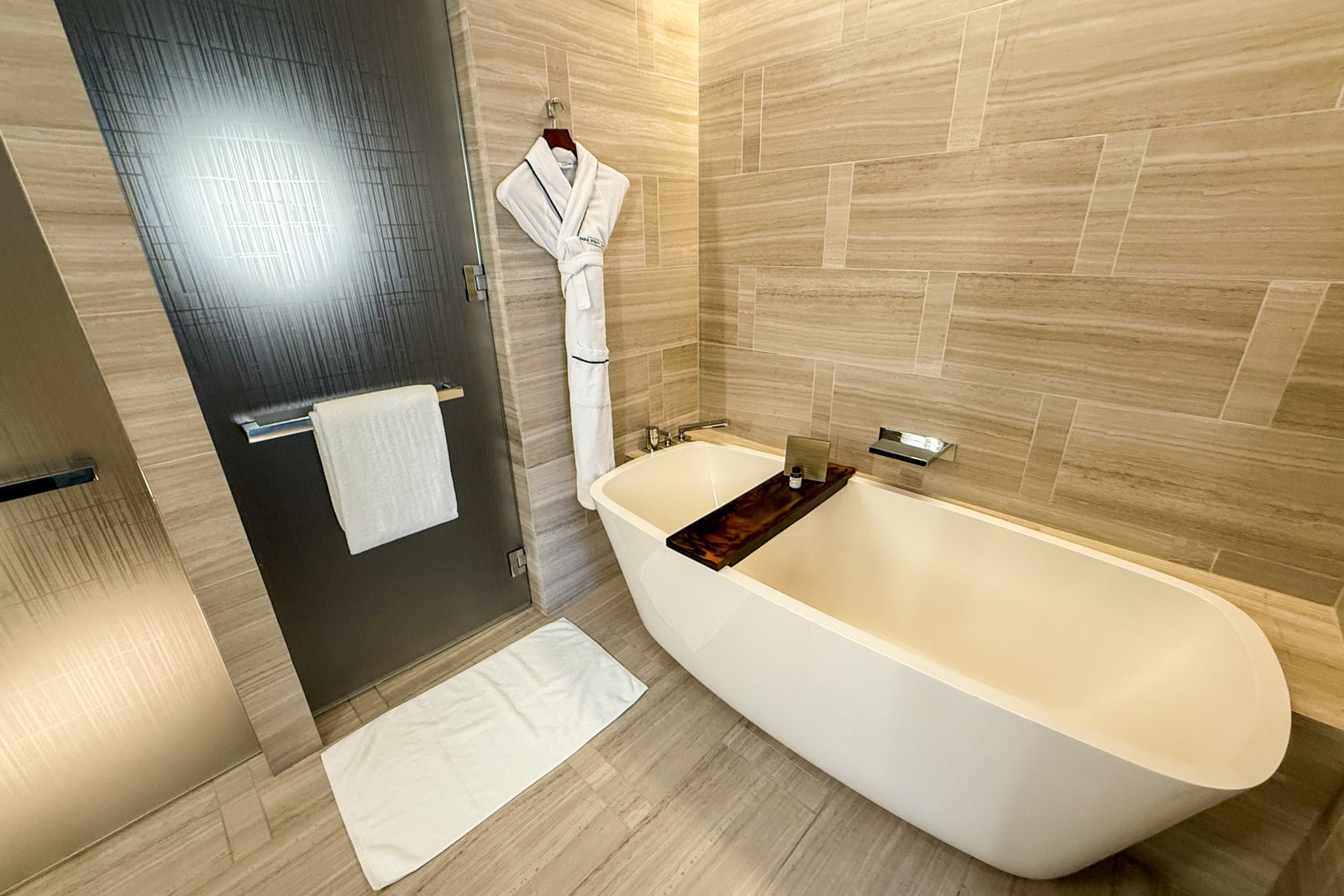 These rooms measure in at 500-625 square feet, which is approximately double the size of many other standard rooms in the city. They also offer a rainfall shower and marble bath, along with those heated bathroom floors that I adore.